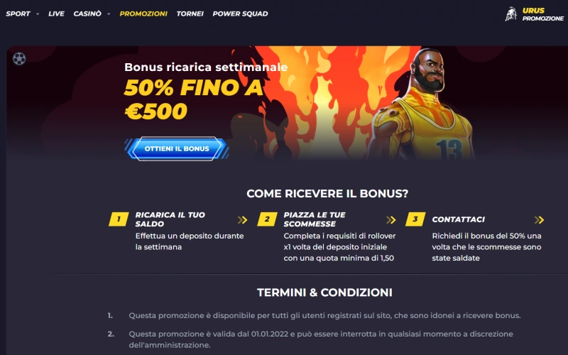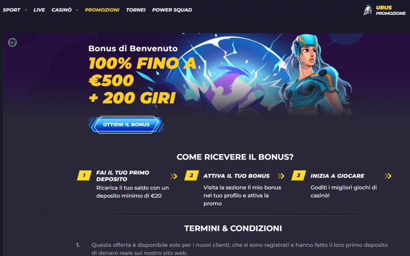 I nuovi giocatori che si registrano sulla piattaforma possono approfittare di un’offerta promozionale dedicata. La promozione include un bonus sul primo deposito fino a 1.000€ con una percentuale del 100%, permettendo ai giocatori di raddoppiare la cifra versata. Il Powbet casino bonus benvenuto è riservato esclusivamente agli utenti maggiorenni residenti in Italia che effettuano la prima registrazione. L’offerta è soggetta a requisiti di scommessa standard che devono essere soddisfatti prima del prelievo delle vincite ottenute.